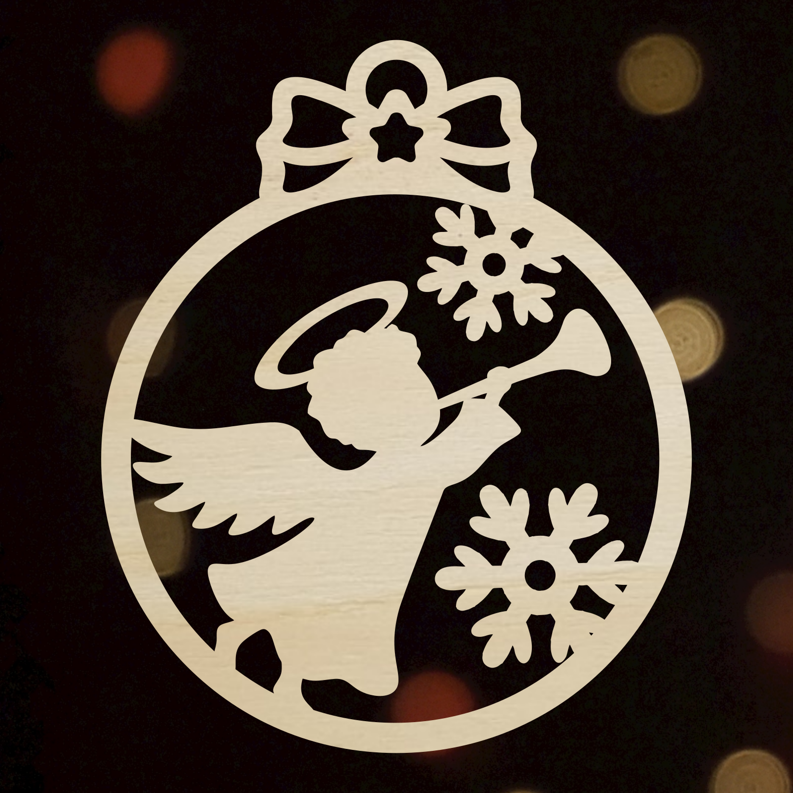 Ornament de crăciun din lemn tăiat cu laser, realizată cu grijă din placaj de 4 mm grosime.