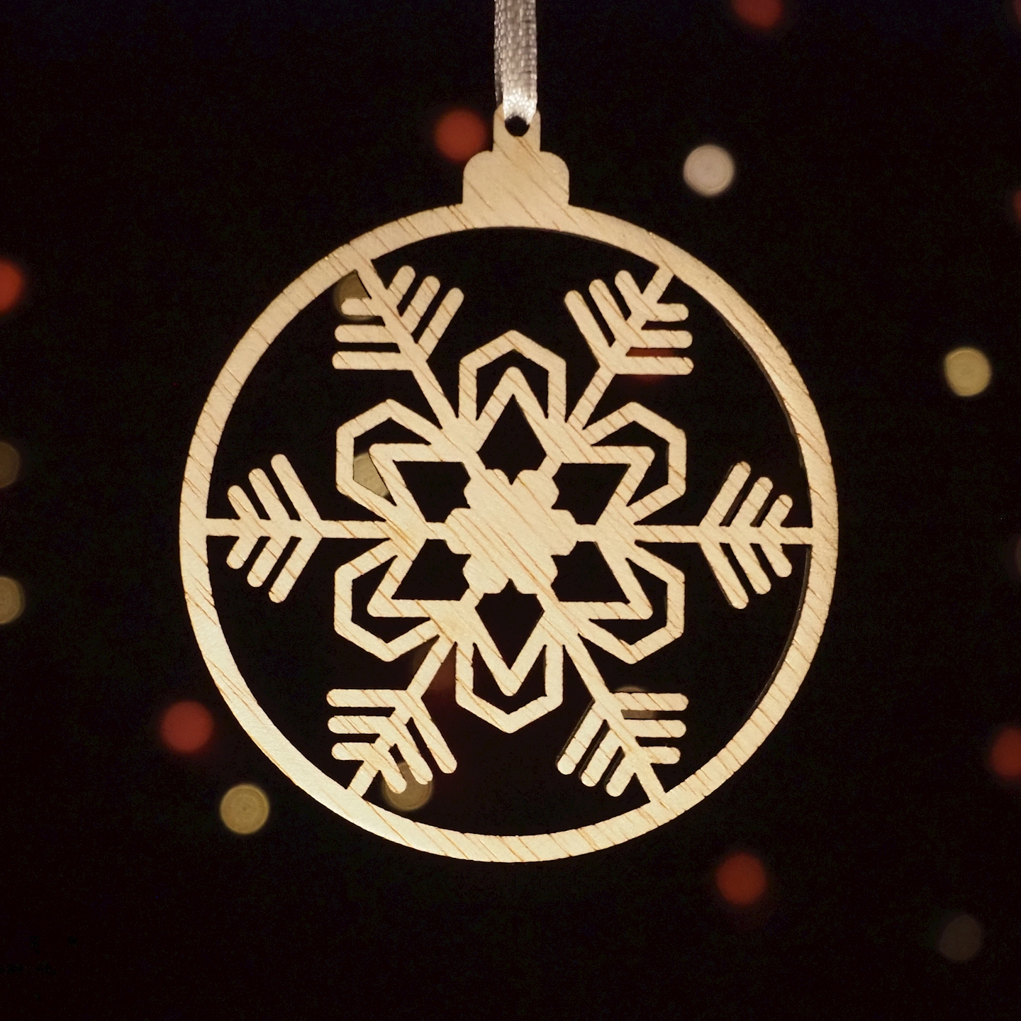 Ornament de crăciun din lemn tăiat cu laser, realizată cu grijă din placaj de 4 mm grosime.