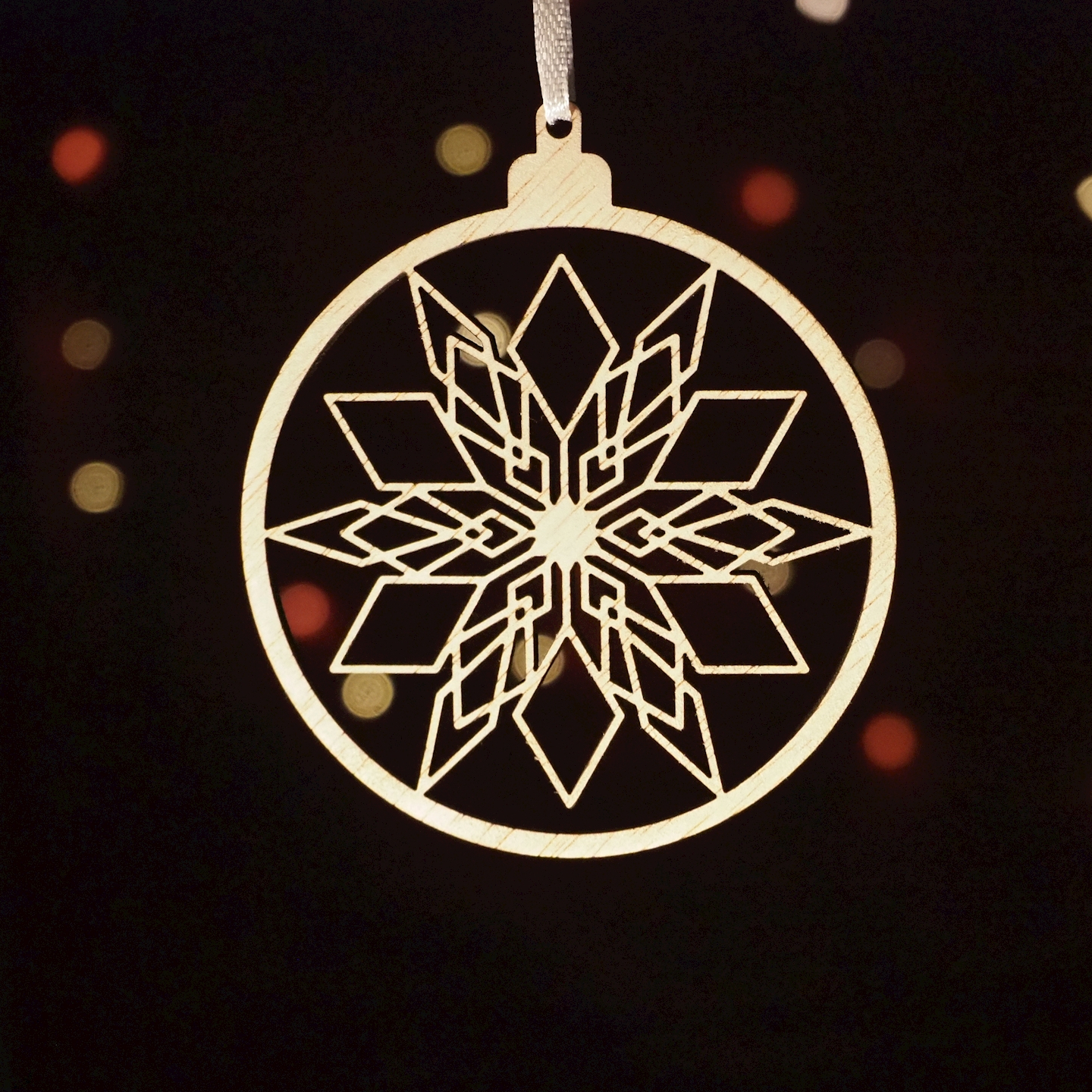 Ornament de crăciun din lemn tăiat cu laser, realizată cu grijă din placaj de 4 mm grosime.