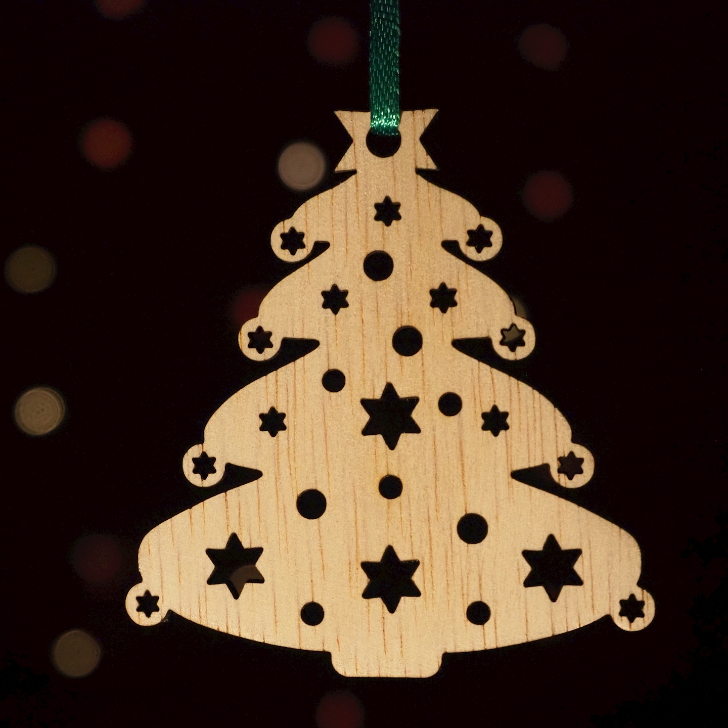 Ornament de crăciun din lemn tăiat cu laser, realizată cu grijă din placaj de 4 mm grosime.