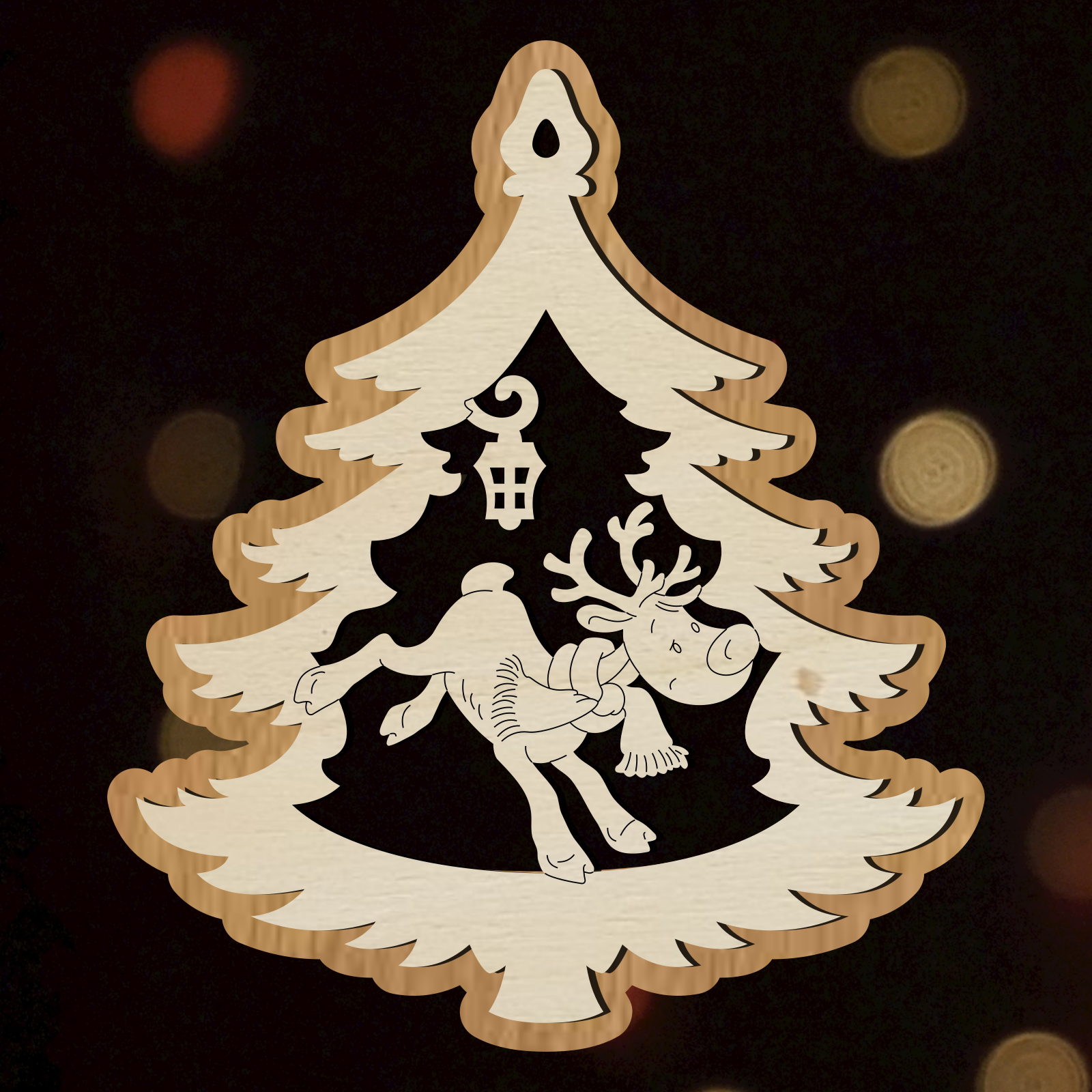 Ornament de crăciun din lemn tăiat cu laser, realizată cu grijă din două straturi de placaj de 4 mm grosime.