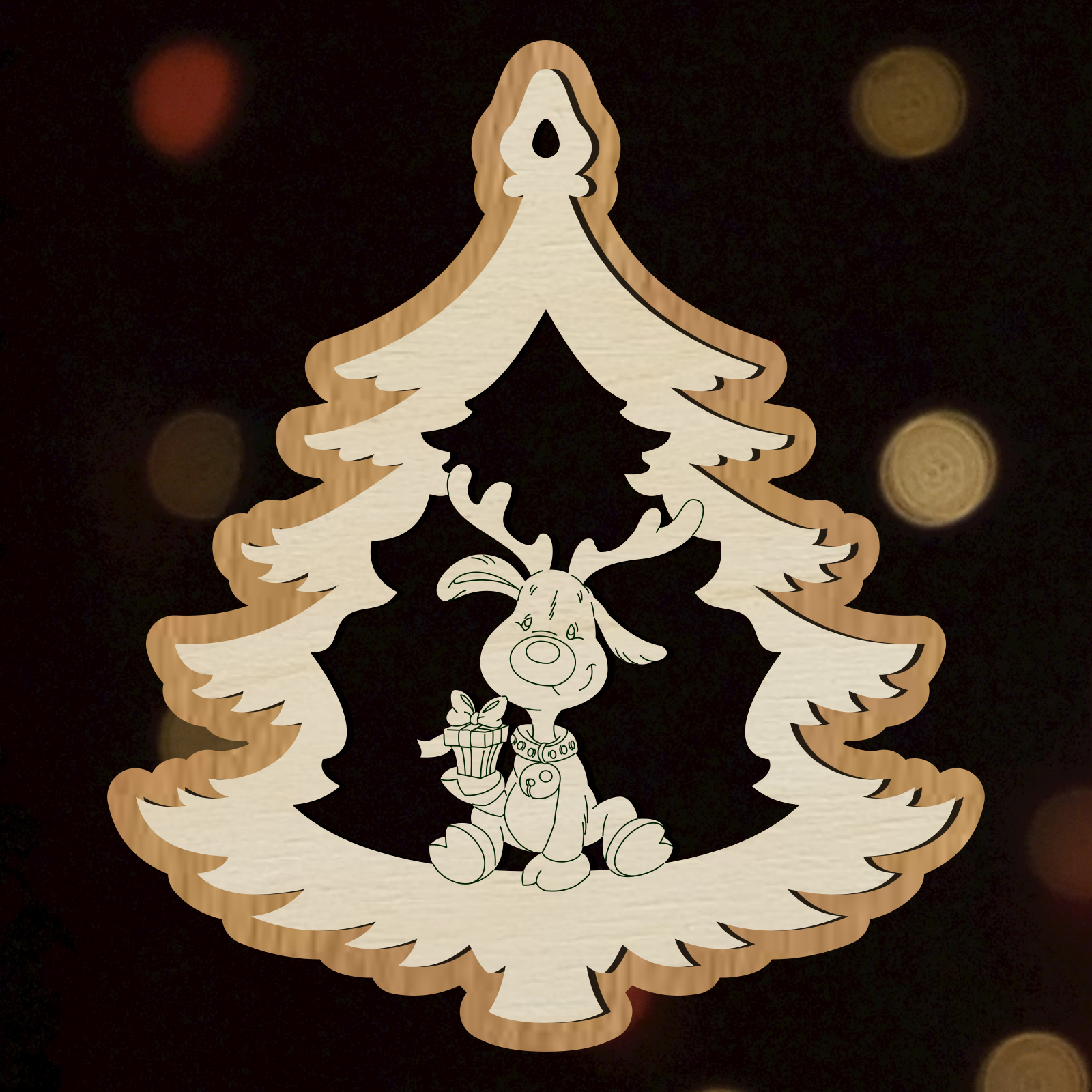 Ornament de crăciun din lemn tăiat cu laser, realizată cu grijă din două straturi de placaj de 4 mm grosime.